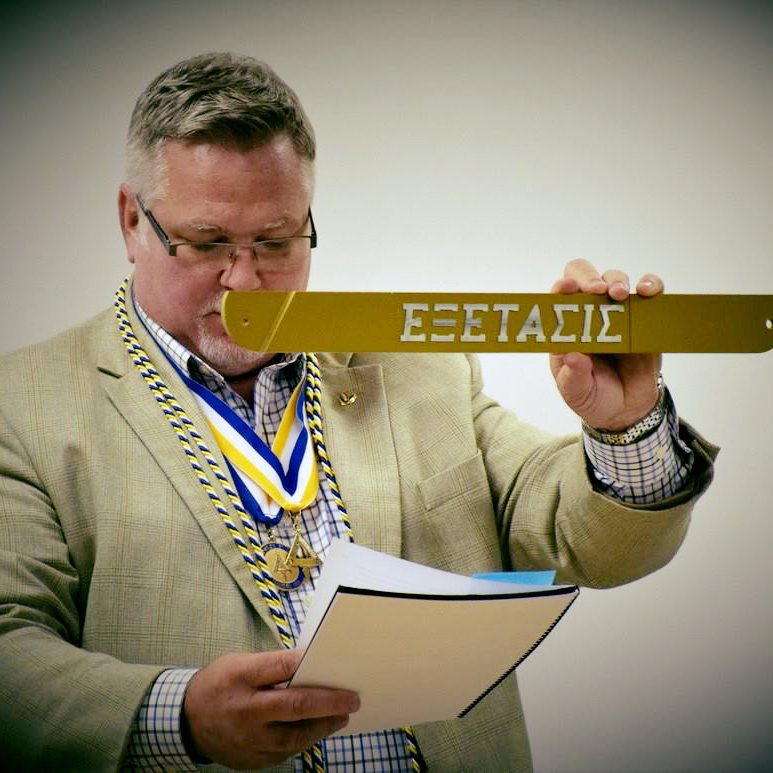 Epsilon Pi Tau Symbols - TEXNIKH, PRAGMATEIA, and EXETASIS. |